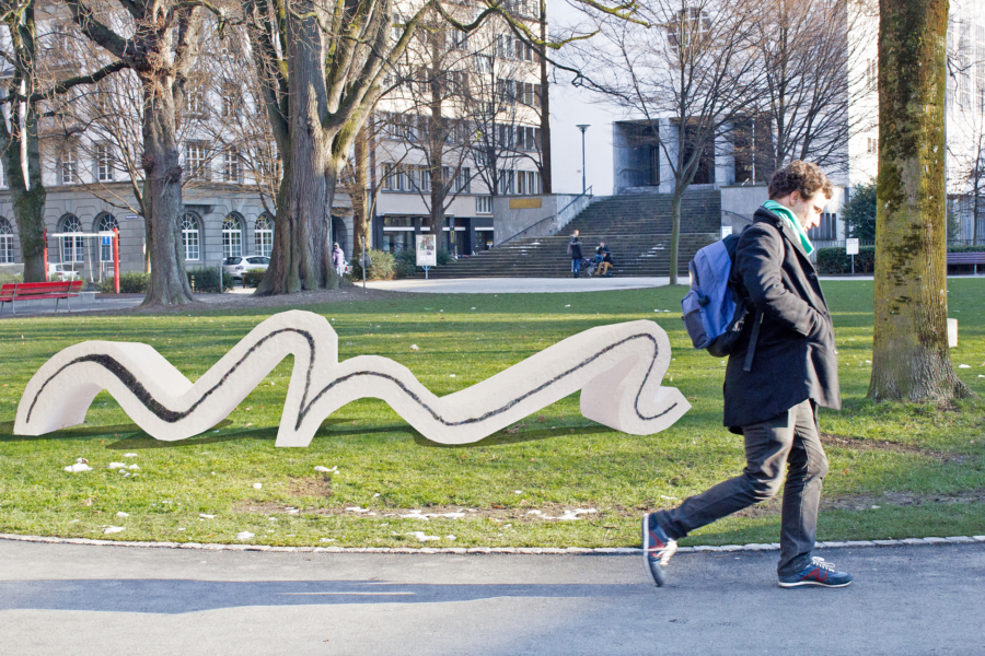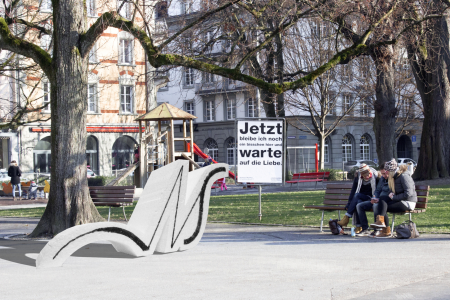 Schriftzüge so platzieren, dass Ort mit Wortinhalt einen Sinn ergibt.